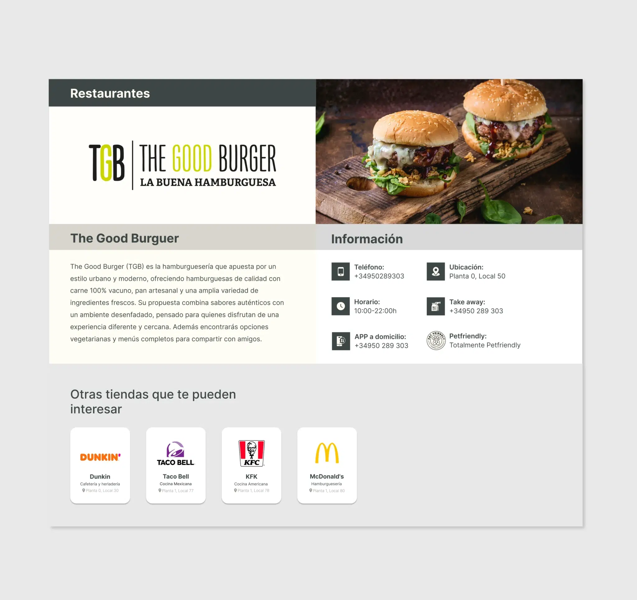 La solución fue un diseño modular y escalable que pone lo importante por delante, reduce pasos a tareas de alto valor y mantiene una estética coherente con la nueva marca. Todo encaja: una home que te da accesos directos a lo útil; un directorio facetado que encuentra en segundos; fichas ricas que informan y orientan; planos con hotspots que ubican; y páginas como Servicios o Tarjeta Estrella pensadas para convertir.